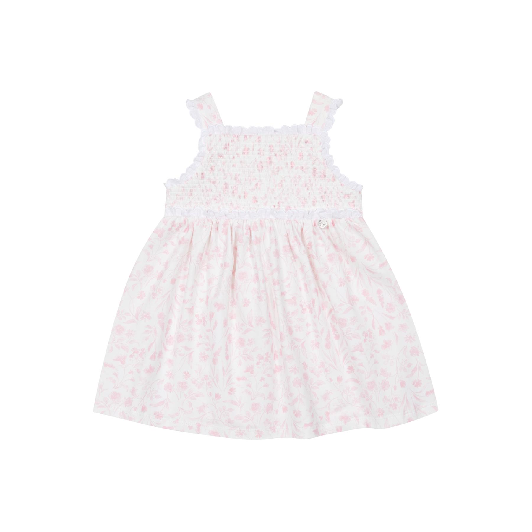 This elegant girls pink floral dress features a soft smocked bodice, delicate shoulder straps, and a flowing skirt for a timeless, classic look. Perfect for special occasions, birthdays, or everyday wear, this lightweight girls dress offers comfort and charm in equal measure. Ideal for boutique styling, photoshoots, and summer outings.